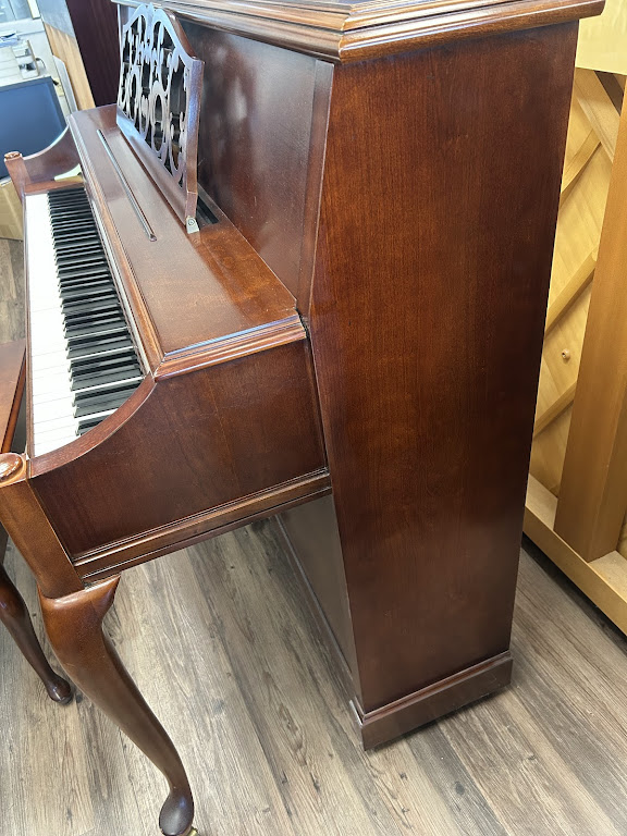 This Baldwin model 2095-cherry console piano has been very well maintained by its original owner from a smoke-free local residence. This elegant instrument is a 43-1/2″ tall console piano and was built in the Baldwin – USA factory in year 1999. The lovely “Queen Anne” cabinet is a traditional satin cherry. This piano is currently available at our Menchey Music Service, Lancaster, PA piano gallery location.