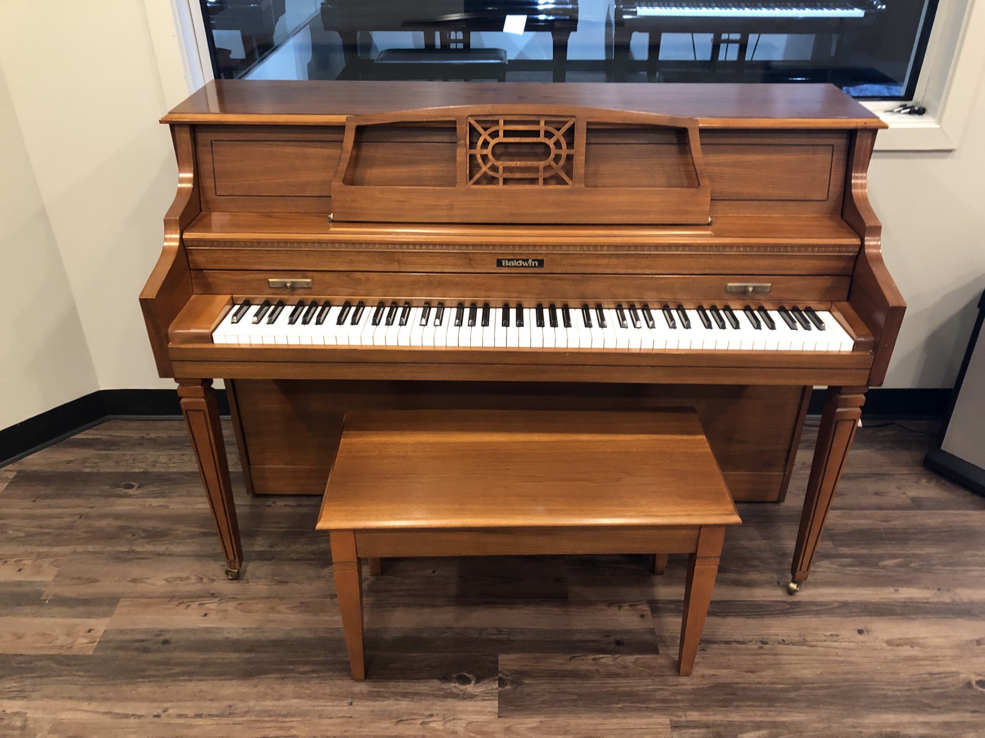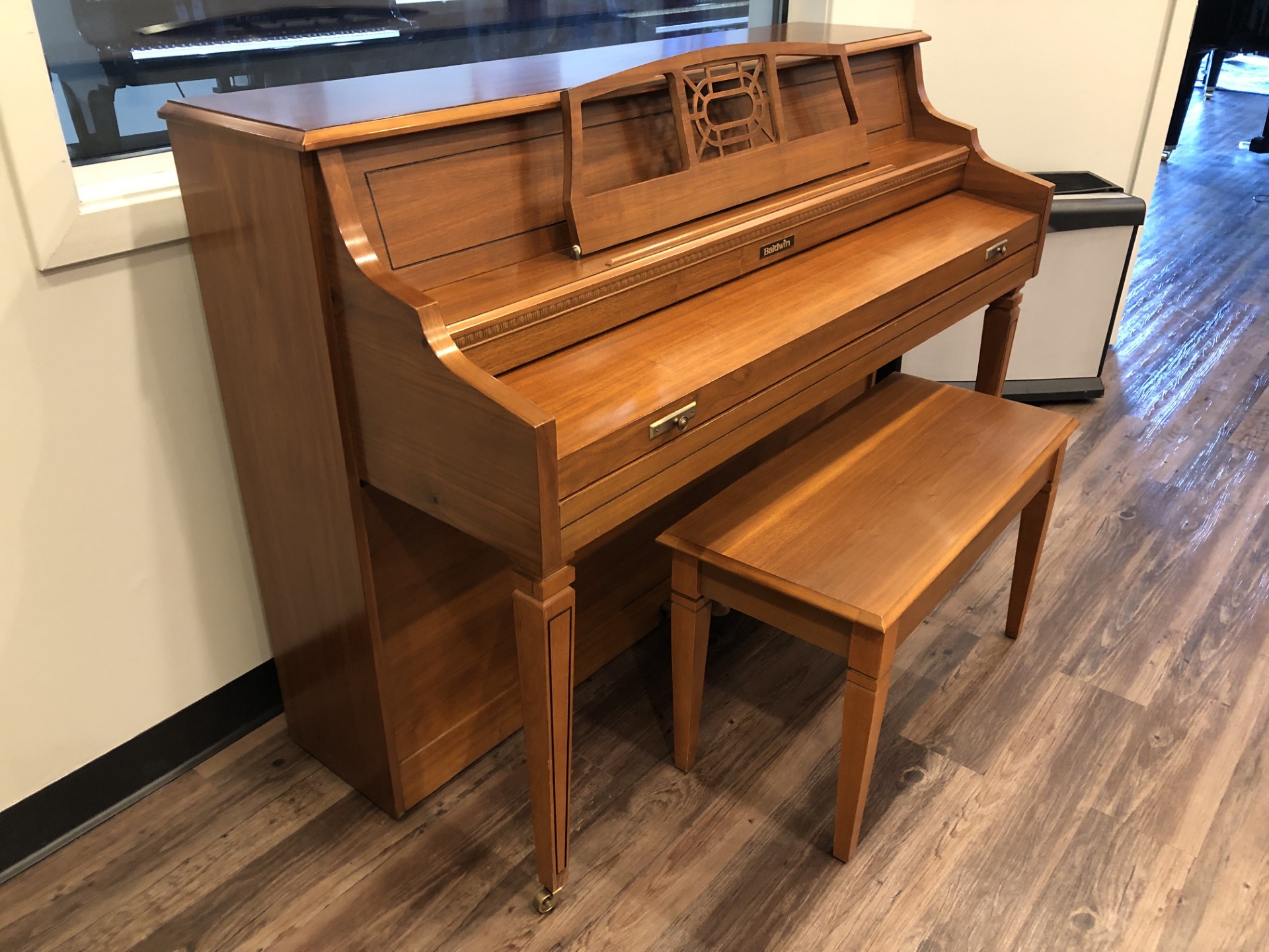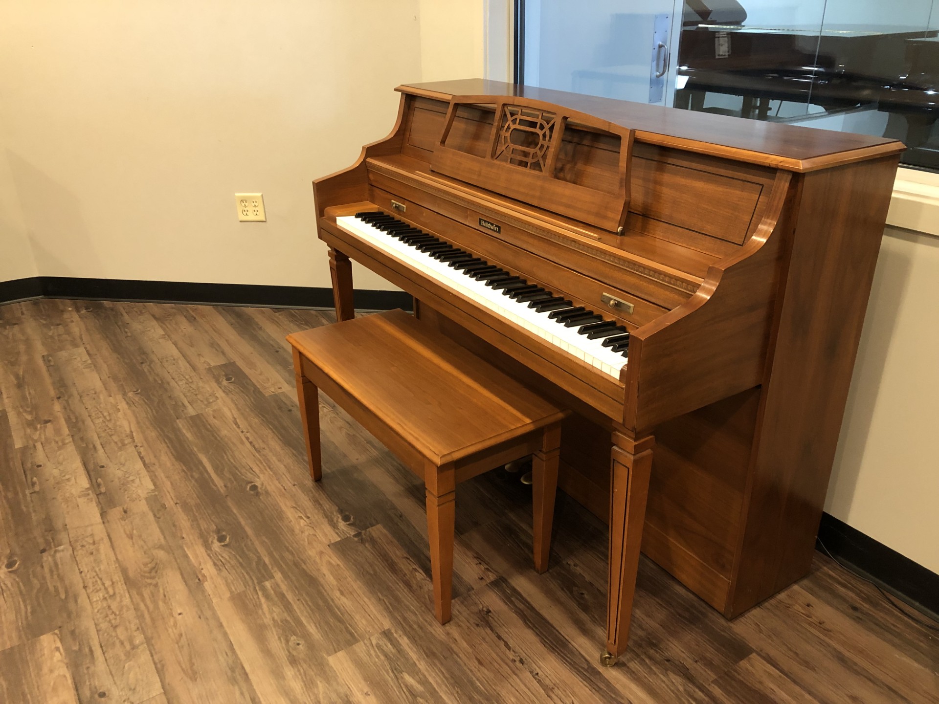 This instrument has been thoroughly inspected and detailed by our professional technical staff. Preparation includes removal of all keys to clean the key bed, cleaning and sterilizing the key-tops, vacuuming the inside cavity and back of the instrument, tuning to A-440, action regulation and cabinet detailing. This beautiful Baldwin is in excellent condition inside and out and has a full and rich tonal quality. It will provide many years of musical enjoyment for any beginning to advanced player.