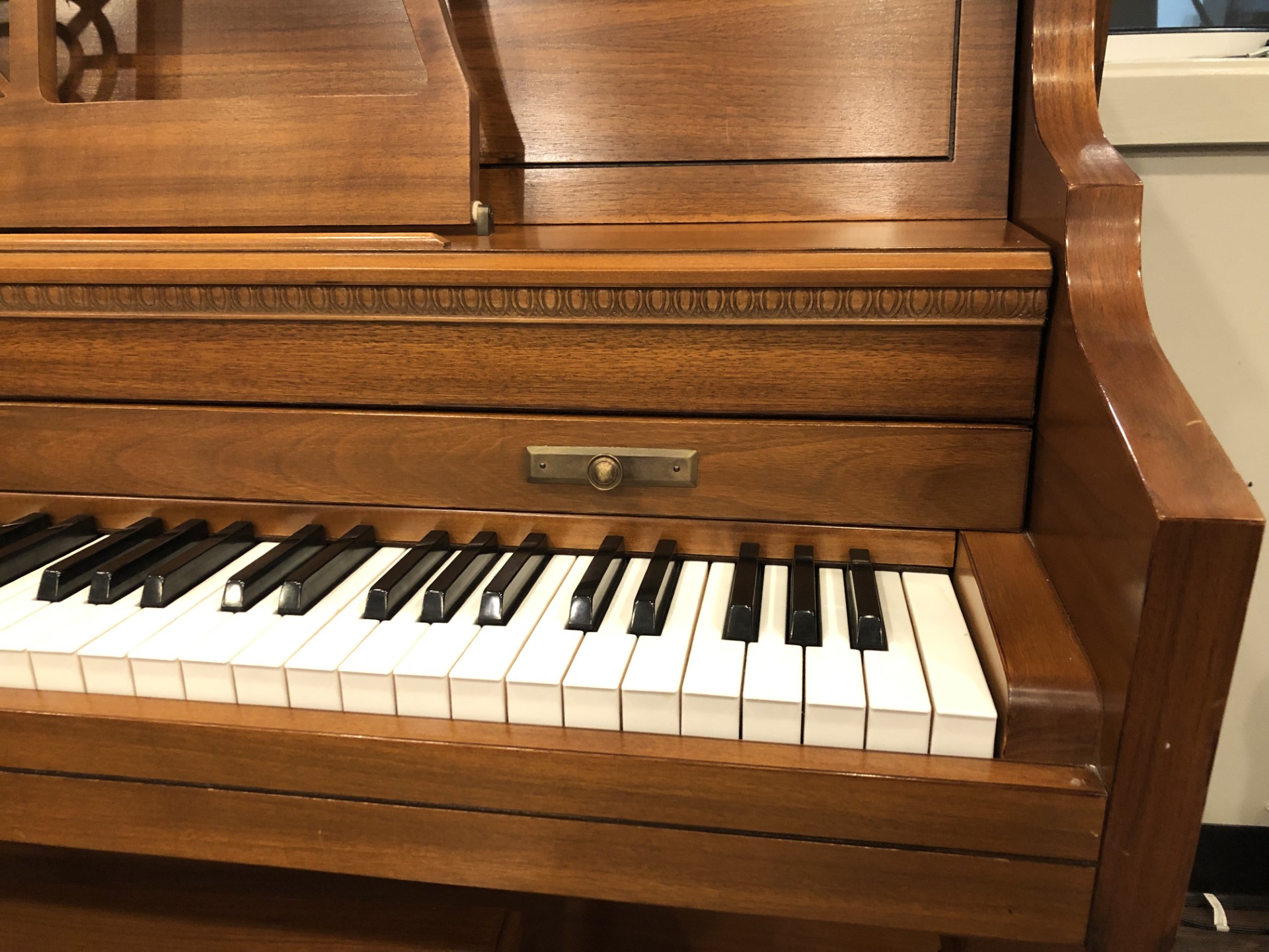 If you are seeking a very nice quality traditional acoustic piano at a very reasonable cost, please consider this lovely one-owner Baldwin, model 621 walnut 42” console. This lovely traditional one-owner instrument was purchased new in year 1986 and well-maintained in a smoke-free and climate controlled local residence. It has received very light use and is in like-new condition.