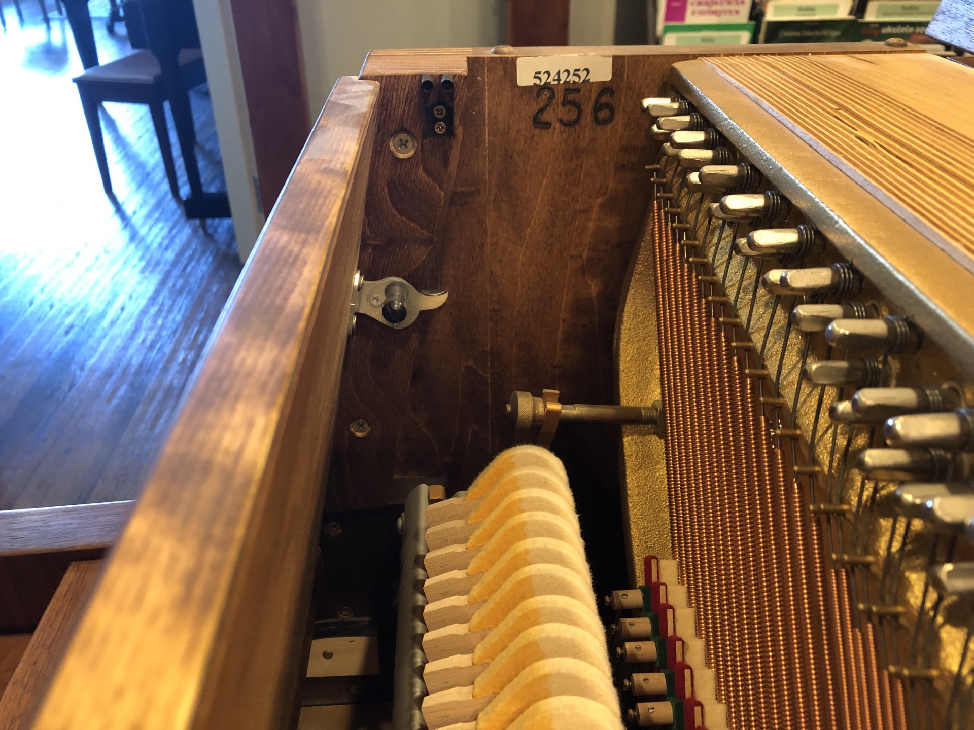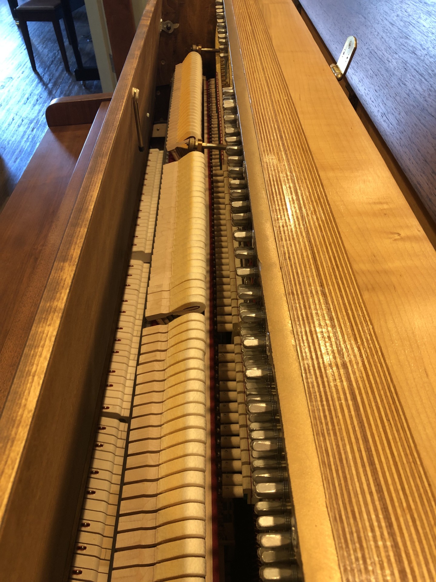 All of our preowned pianos have been thoroughly inspected and detailed by our technical staff. Preparation includes under-key cleaning, key-top cleaning and polishing, vacuuming the inside cavity and back of the instrument, tuning, action regulation and cabinet detailing.