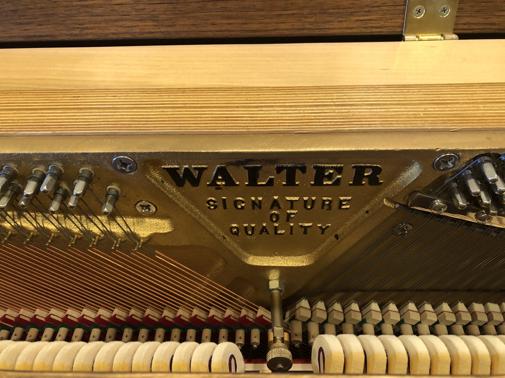 The Walter Piano Company is fairly unique among U.S. piano manufacturers in that it is a family business, staffed by Charles and his wife, several of their grownup children, and various in-laws, in addition to unrelated production employees. The Walters say that each piano is inspected and signed by a member of their family before being shipped. Dealers and technicians report that doing business with the Walters is a pleasure in itself.