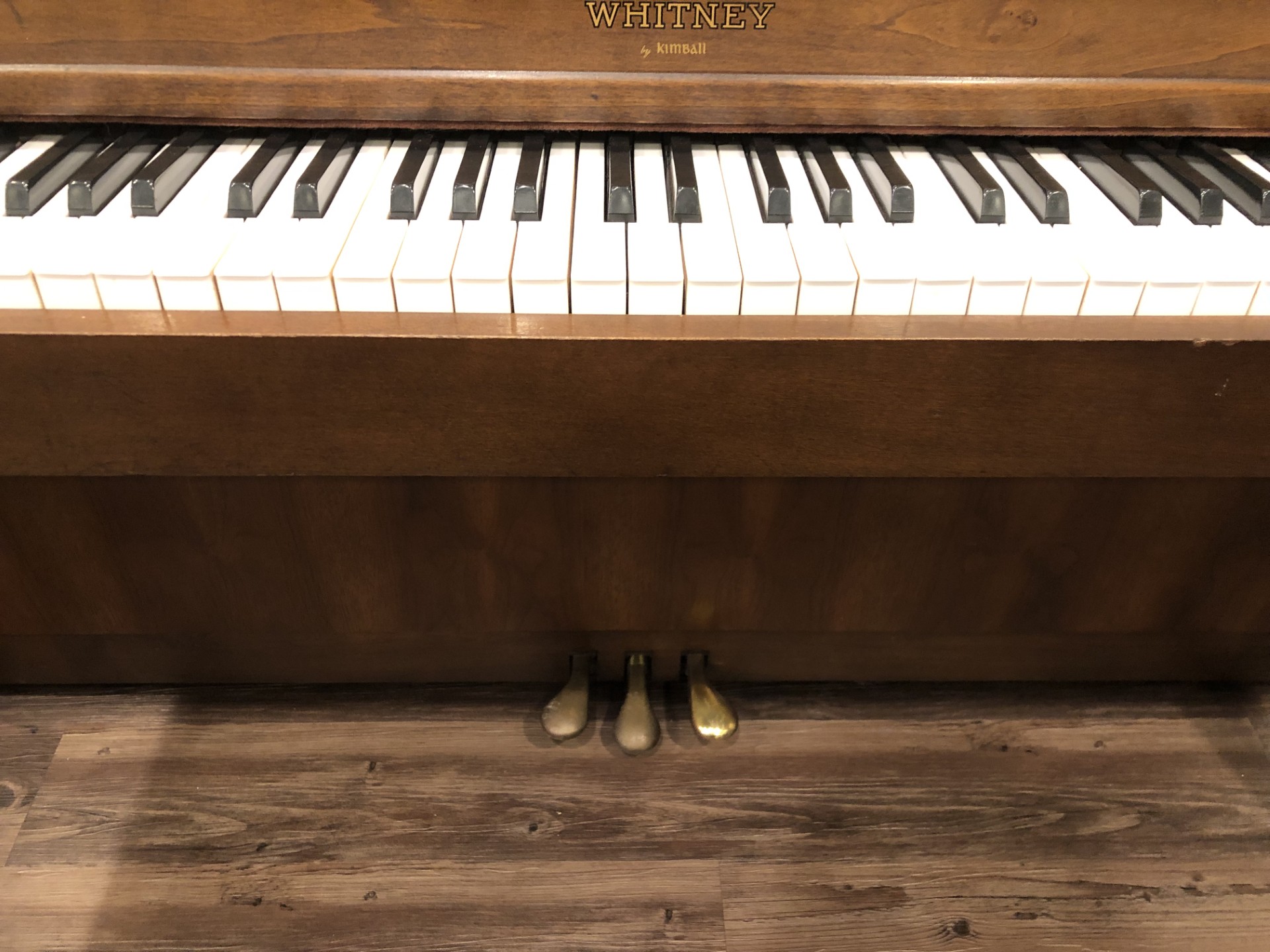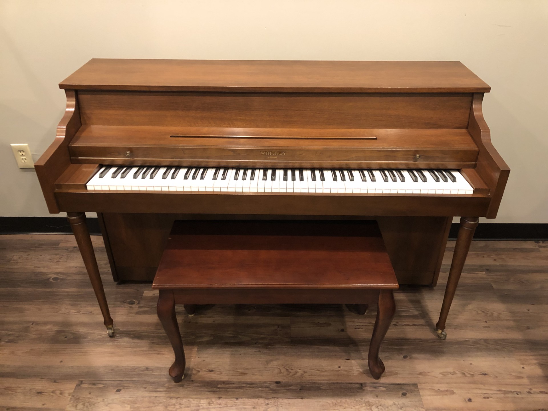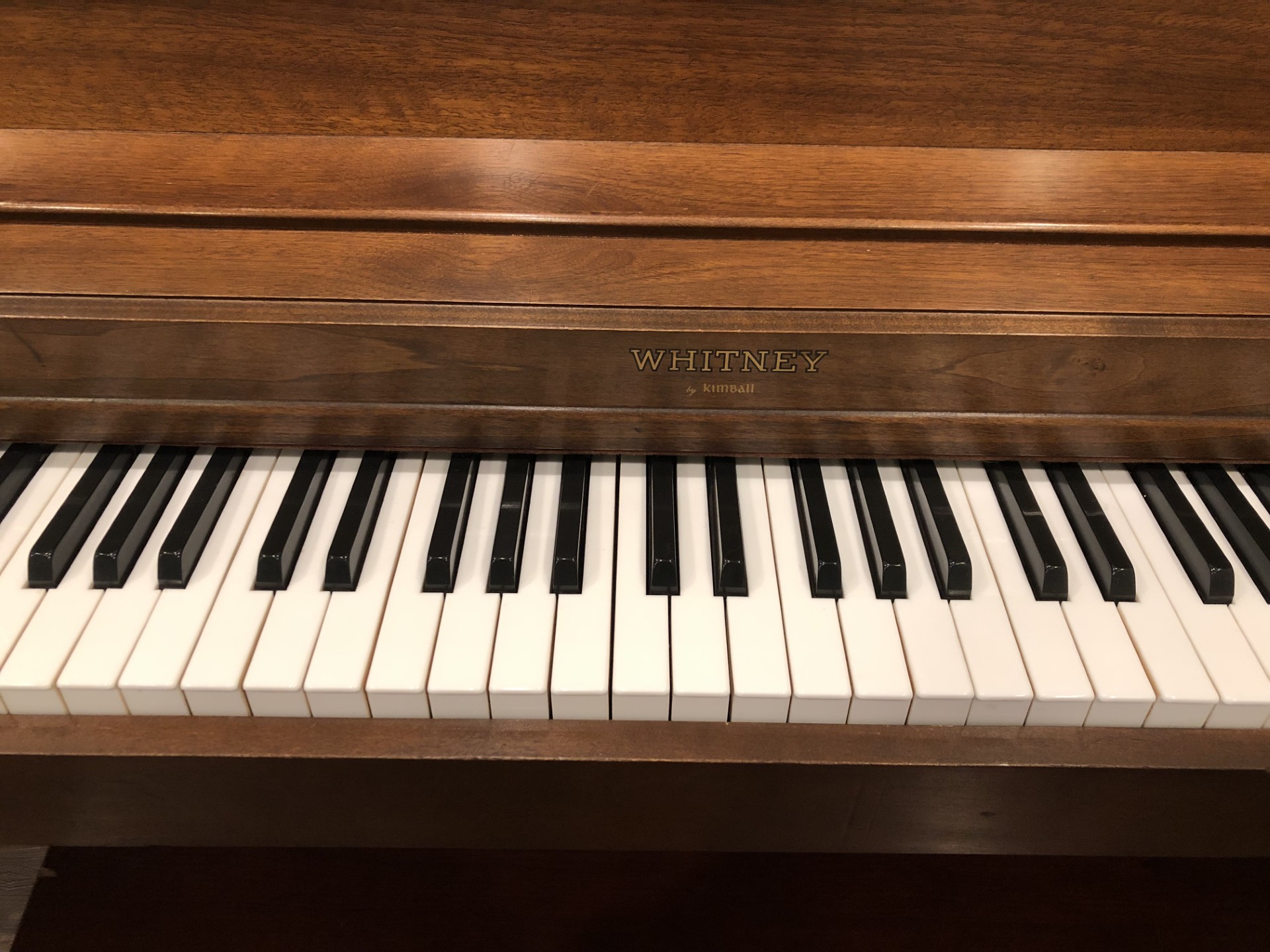 Our Menchey Music piano gallery location in Timonium, MD has recently received this very clean and well-maintained one-owner Kimball, “Whitney” model spinet piano. This simple, yet elegant piano was built in French Lick, Indiana, USA in year 1982 and comes to Menchey Music from a smoke-free local residence.