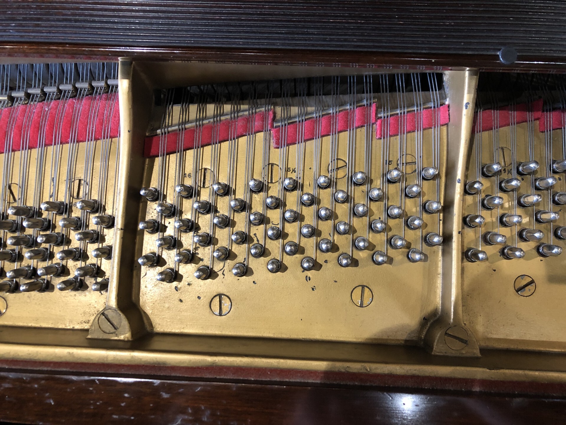 This instrument enjoyed a restoration project in year 2010 that included new Renner hammers, shanks and whippens, rebushing of key fronts and replacement of front punchings. In addition, the piano received new bass strings, pins, damper felts and the soundboard and plate were cleaned and detailed.