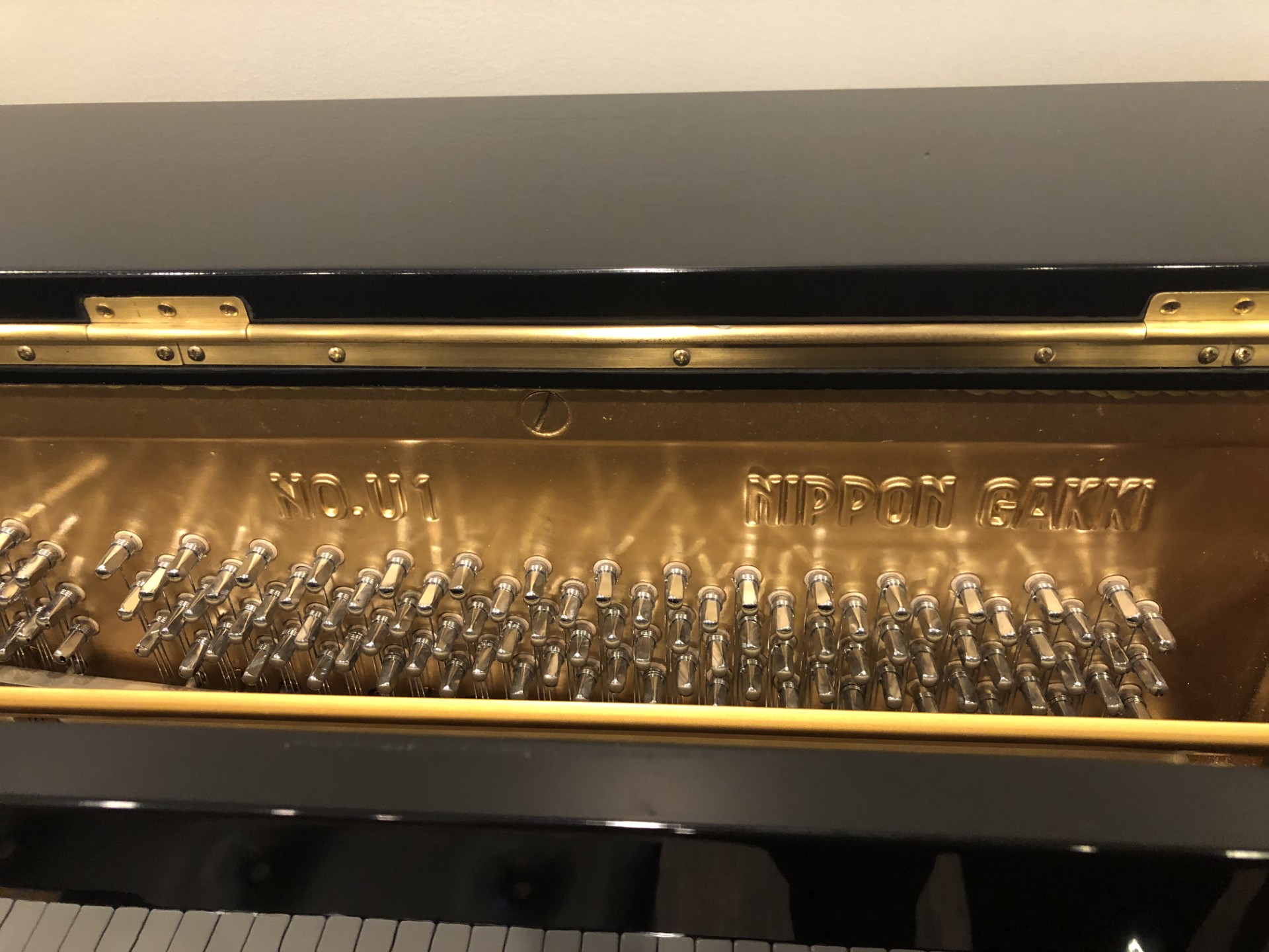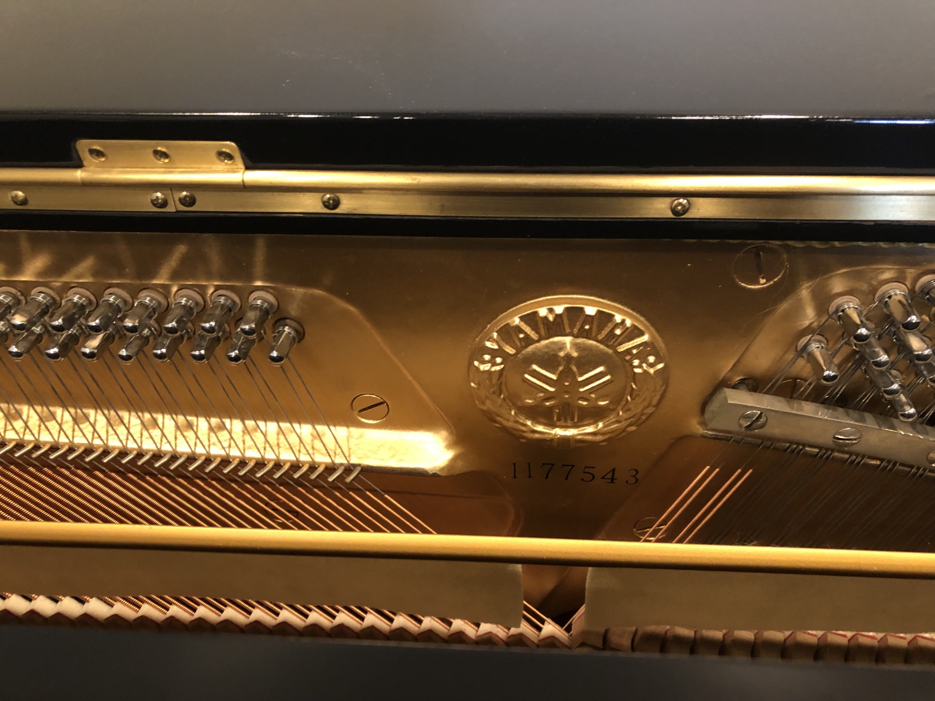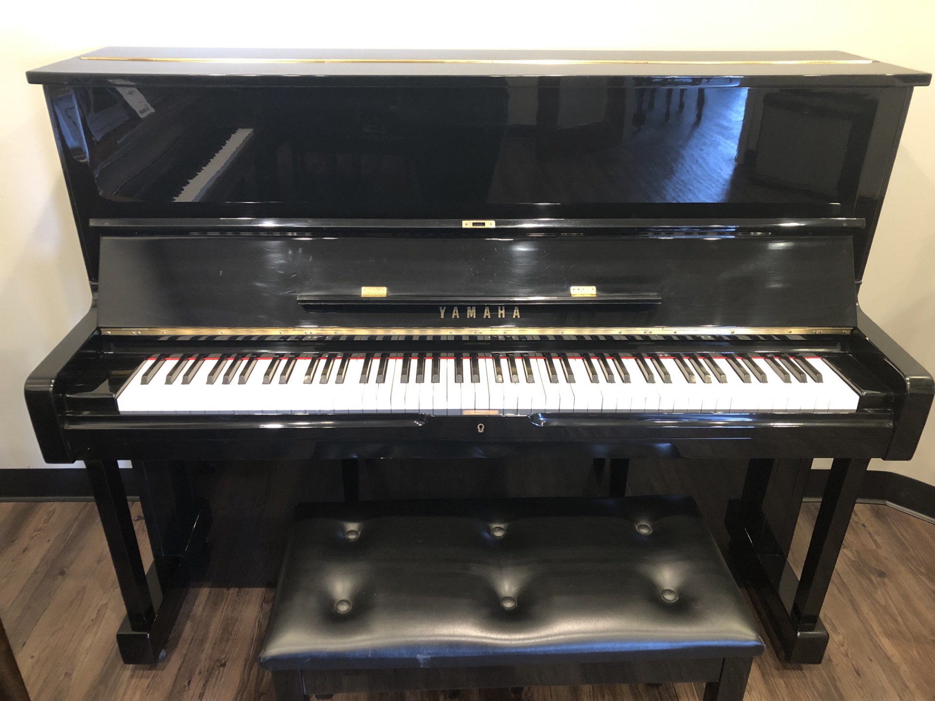This Yamaha U1 was manufactured in Japan. The longer string length and solid spruce soundboard of this instrument produce a sound that is rich and full-bodied. The action is smooth and responsive to every musical expression. This fine piano would be appropriate for any pianist seeking an upright instrument that reaches the highest pinnacle of performance.