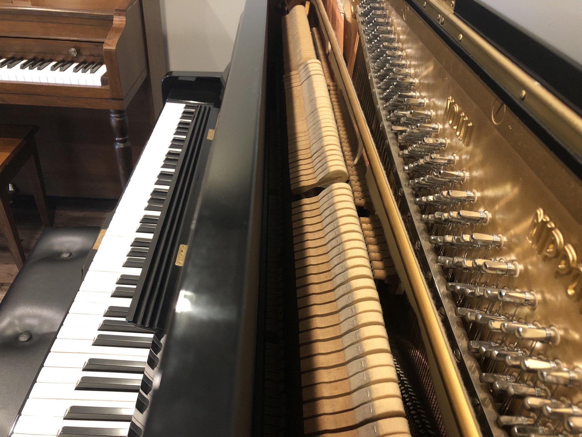 Our pre-sale professional prep includes complete inspection, tuning, key removal and under-key cleaning, action regulation and cabinet detailing and polishing. The purchase of this pristine upright piano includes a matching bench with music storage and one free tuning in your home. Professional delivery and set-up in your home is available for a very reasonable cost. See to appreciate!