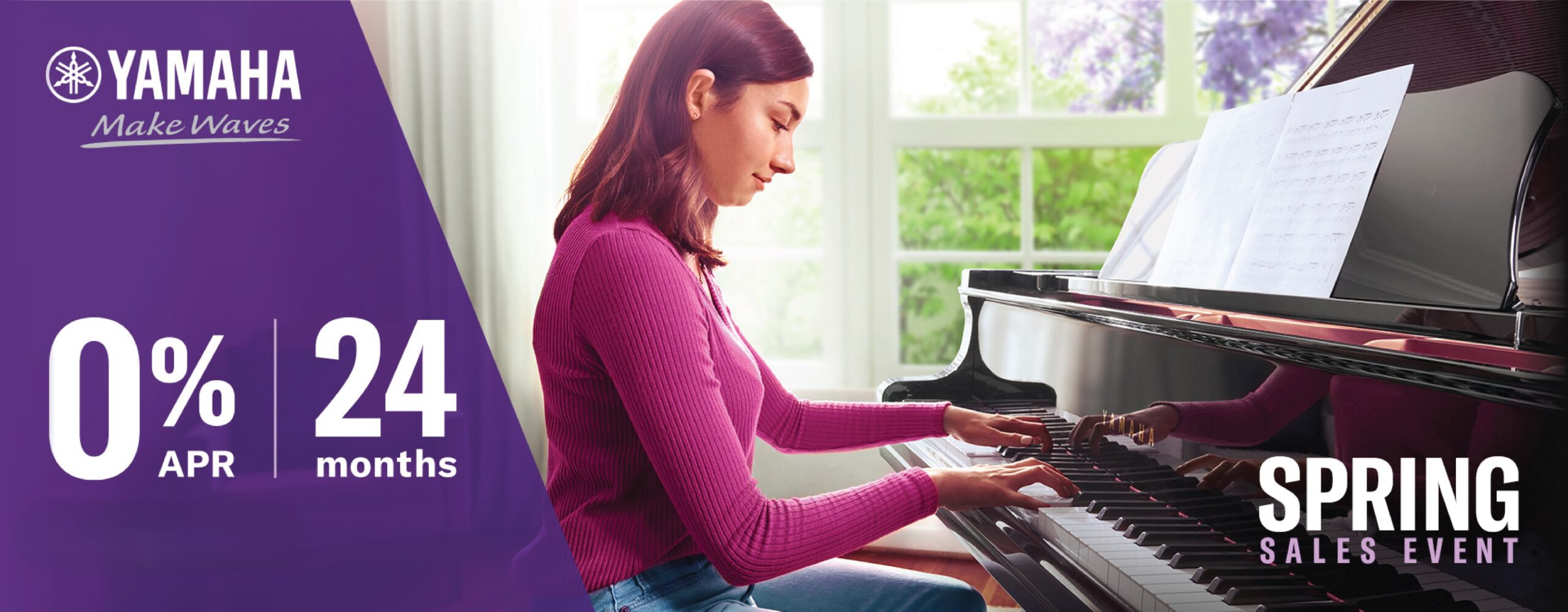 * Subject to credit approval. 24 monthly payments of $41.67 per $1,000 financed at 0.00% APR. On purchases of new and in-stock qualifying Yamaha pianos from May 1, 2026 to July 6, 2026.